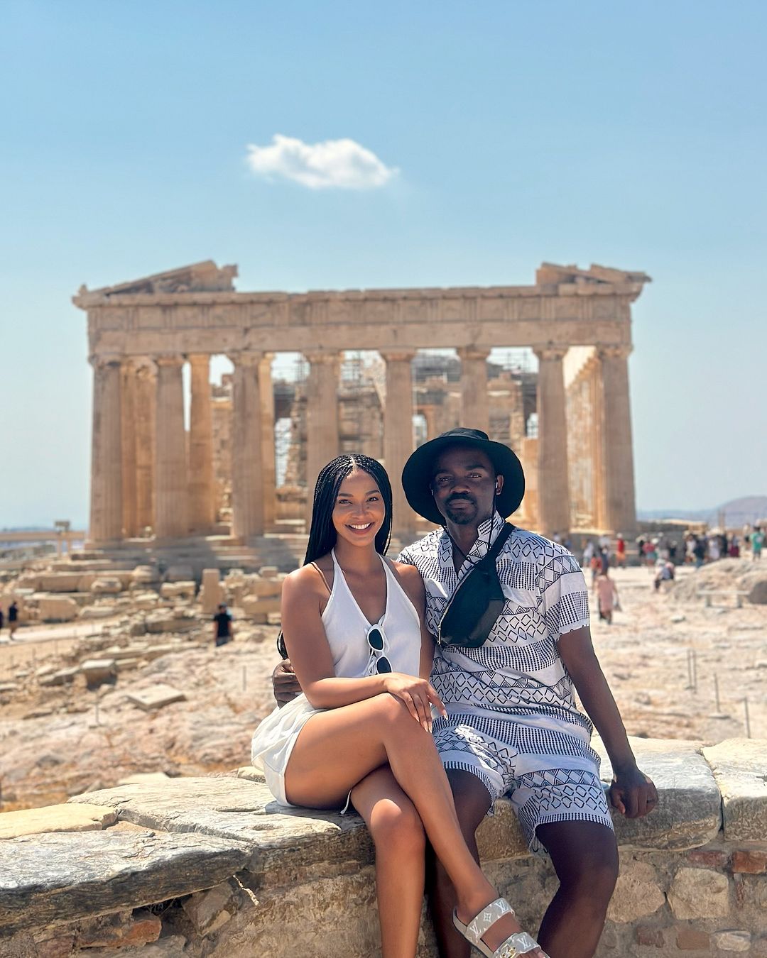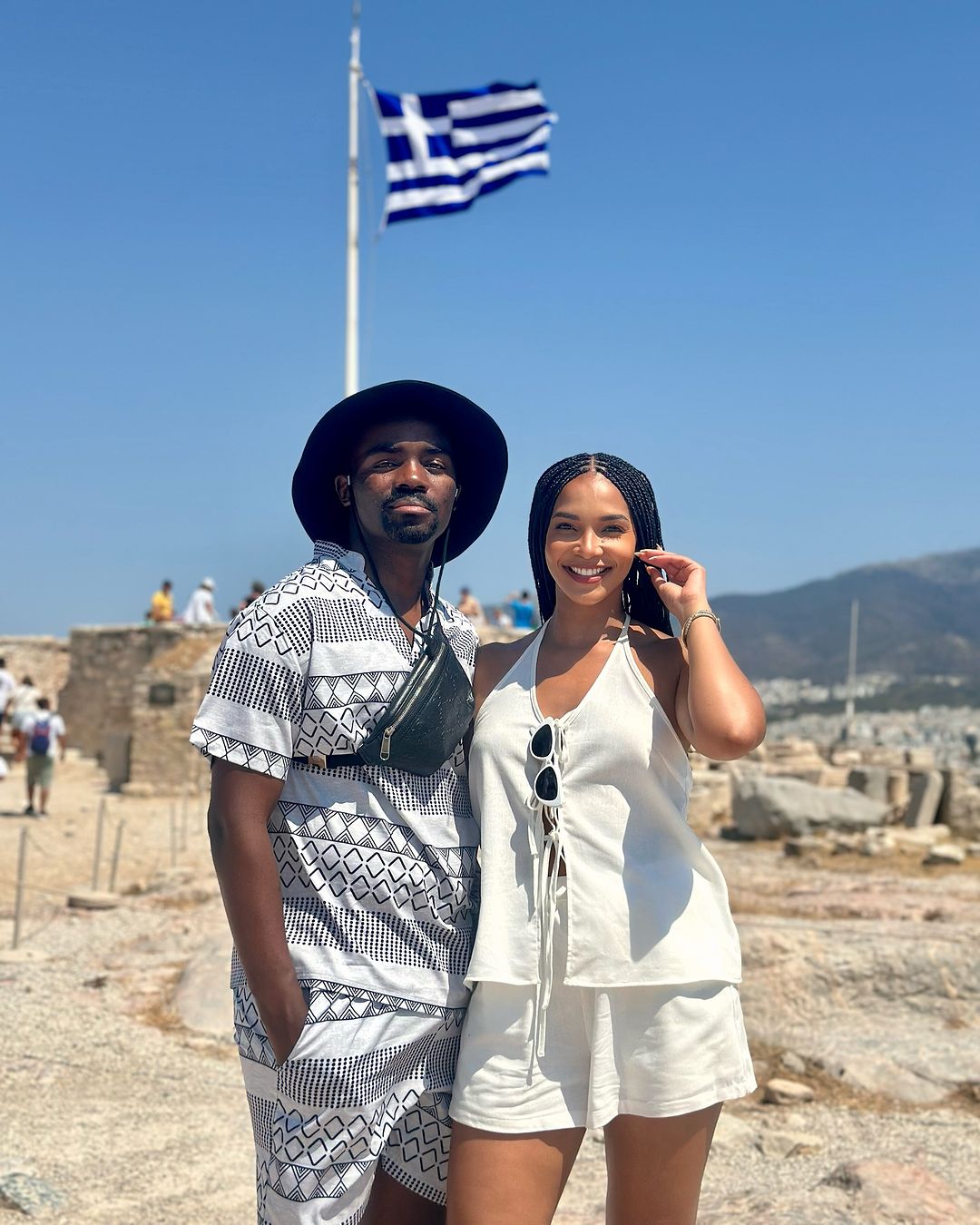 Musa Mthombeni and his wife Liesl Laurie are having the best time in Greece. The famous South African couple flew out of the country to celebrate their 3rd wedding anniversary.